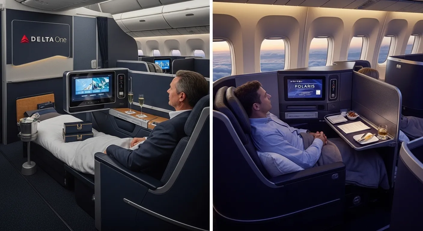 Choosing between Delta vs. United, two of America's biggest carriers for a long-haul business class flight, is a genuinely meaningful decision. The seat you sleep in, the food you eat, the lounge you spend two hours in before departure - these details add up, especially on a twelve-hour overnight flight. Both United Polaris and Delta One have invested heavily in their premium cabins over the past several years, and both deliver a strong product. But they deliver it differently, and understanding those differences is what makes the Delta vs. United comparison worth doing carefully before you book.